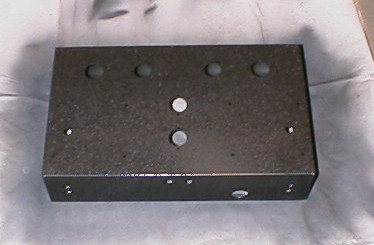 Here is what the painted chassis will look like, this is a view from the rear. Note that all the holes have been drilled, even those required for mounting the tube sockets to the chassis. I did this in order to reduce the likelihood of scratching the finish during construction. The finish was oven baked for about 2 hours and then allowed to cool for several hours. (Use caution, some paints may generate flammable/explosive outgassing during baking.) The finish has proved to be durable,